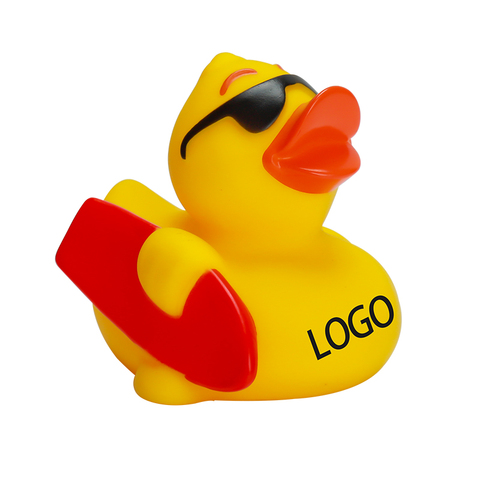Vịt Cao Su Có Logo Tùy Chỉnh Kèm Kính Mát Đồ Chơi Tắm Ván Trượt Vinyl PVC Đồ Chơi Vịt Cao Su Màu Vàng Nổi Bằng Nhựa Thân Thiện Với Môi Trường