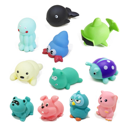 Venta al por mayor de fábrica de plástico de dibujos animados exprimible de goma suave Animal marino bebé baño jugar agua sonido juguetes lote mixto